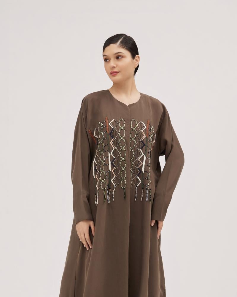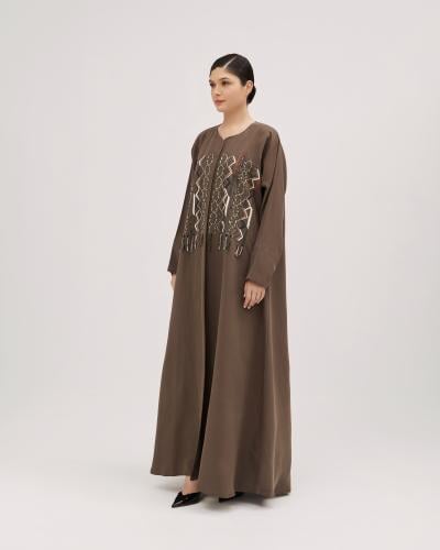 عباية رايفال النسائية مع تطريز الورود تجمع بين الأناقة التقليدية واللمسات العصرية. مصنوعة من قماش كوري لينين كريب فاخر، تتميز هذه العباية بتطريز الورود المعقد على الأكمام وإغلاق بزر مخفي للحصول على مظهر أنيق ومتناسق. أكمام الشيفون المطرزة تضيف لمسة من الرقي، مما يجعلها مثالية للارتداء اليومي والمناسبات الخاصة. مع قص الكتف المنتظم لضمان راحة تامة، هذه العباية تضمن لكِ إطلالة أنيقة ومحتشمة طوال اليوم.